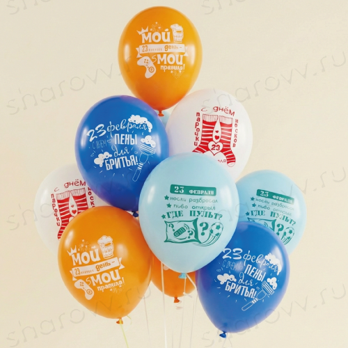 Облако из шаров ассорти "Мой день - мои правила!" состоит из 10 латексных шаров ассорти с готовым оригинальным дизайном к празднику. Размер латексных шаров 35-40см. Гарантированное время полета шариков 48 часов (как правило летают неделю и дольше). Шарики доставляются собранные в облако, которое можно распустить.