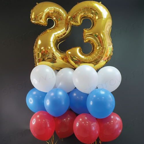 Сет из шаров "Цифры триколор" состоит из двух фонтанов шаров, в каждом из которых: