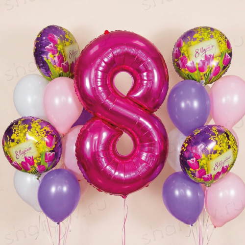 - 2 круглых шара фольгированных с готовым дизайном на 8-е марта.