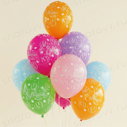 Облако из шаров "8 марта. Тюльпаны" состоит из 10 латексных шаров ассорти с готовым дизайном на 8-е марта.