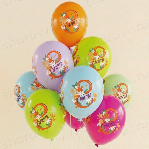 Облако из шаров ассорти "8 марта. Цветы" состоит из 10 латексных шаров ассорти с готовым дизайном на 8-е марта.