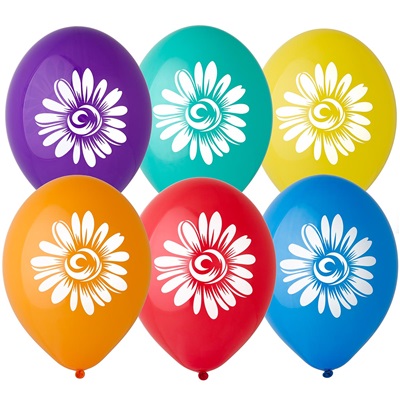 Воздушные шары "Ромашка большая" наполнены гелием. Время полета 12 часов, можно продлить обработав шарики Hi-Float. Гарантированное время полета обработанных шариков 48 часов (как правило летают неделю и дольше).