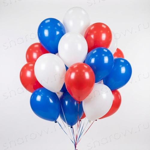 Воздушные шары белого, синего и красного цвета, наполнены гелием. Время полета 12 часов, можно продлить обработав шарики Hi-Float. Гарантированное время полета обработанных шариков 48 часов (как правило летают неделю и дольше).