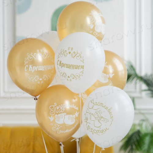 Облако из шаров ассорти "С Крещением!" состоит из 9 латексных шариков ассорти с готовым рисунком. Размер латексных шаров 30-35 см. Гарантированное время полета шаров 48 часов (как правило летают неделю и дольше). Шарики доставляются собранными в облако на усмотрение аэродизайнера, которое можно распустить под потолок. Шары можно собрать в фонтан, если необходимо, сообщите об этом менеджеру при оформлении заказа.