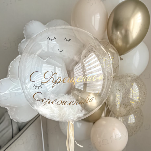 - шара баблс на грузике с перьями и индивидуальной надписью на ваш выбор;