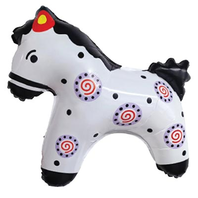 Воздушный шар из фольги "Лошадка дымковские узоры" надут гелием. Время полета фольгированного шара от 3-х дней до нескольких недель.