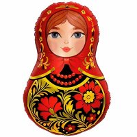 Воздушный шар из фольги "Матрешка Золотая роспись" надут гелием. Время полета фольгированного шара от 3-х дней до нескольких недель.