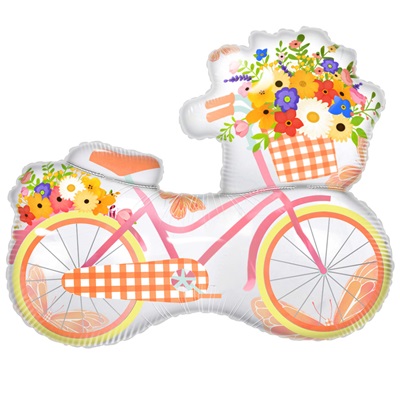 Воздушный шар из фольги "Велосипед с цветами" надут гелием. Время полета фольгированного шара от 3-х дней до нескольких недель.