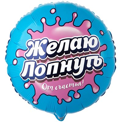 Шар фольга "ЖЕЛАЮ ЛОПНУТЬ ОТ СЧАСТЬЯ!"
