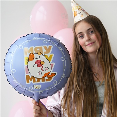 Воздушный шар из фольги "МЯУ ПушМяу" надут гелием. Время полета фольгированного шара от 3-х дней до нескольких недель.