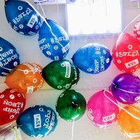 Разноцветные воздушные шары с хештегами наполнены гелием. Время полета 12 часов, можно продлить обработав шарики Hi-Float. Гарантированное время полета обработанных шариков 48 часов (как правило летают неделю и дольше).