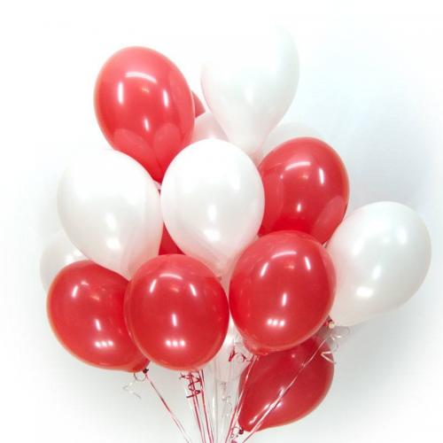 Воздушные шары белого и красного цвета, наполнены гелием. Время полета 12 часов, можно продлить обработав шарики Hi-Float. Гарантированное время полета обработанных шариков 48 часов (как правило летают неделю и дольше).