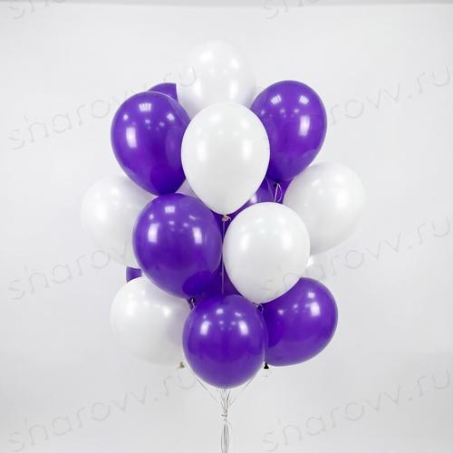Воздушные шары фиолетового и белого цвета, наполнены гелием. Время полета 12 часов, можно продлить обработав шарики Hi-Float. Гарантированное время полета обработанных шариков 48 часов (как правило летают неделю и дольше).