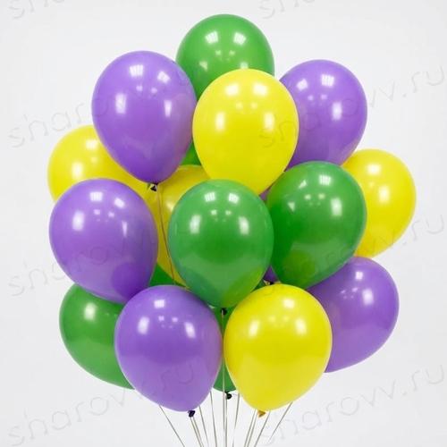Шары латекс 35см. "Желтый, зеленый, сиреневый"