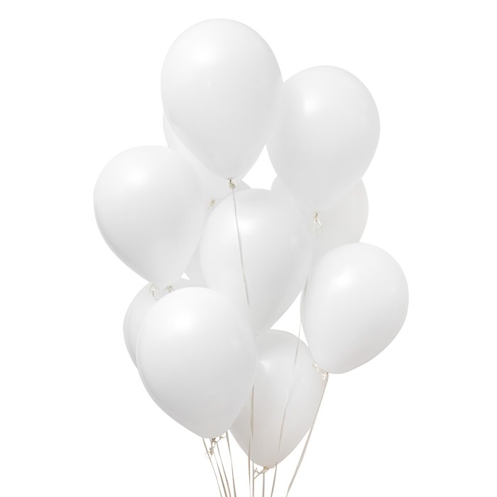 Воздушные шары пастель белого цвета, наполнены гелием. Размер шариков 30-35см. Время полета 12 часов, можно продлить обработав шарики Hi-Float. Гарантированное время полета обработанных шариков 48 часов (как правило летают неделю и дольше).