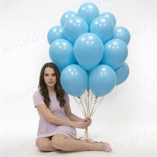 Воздушные шары голубого цвета, наполнены гелием. Размер шариков 35см. Время полета 12 часов, можно продлить обработав шарики Hi-Float. Гарантированное время полета обработанных шариков 48 часов (как правило летают неделю и дольше).