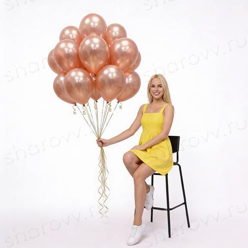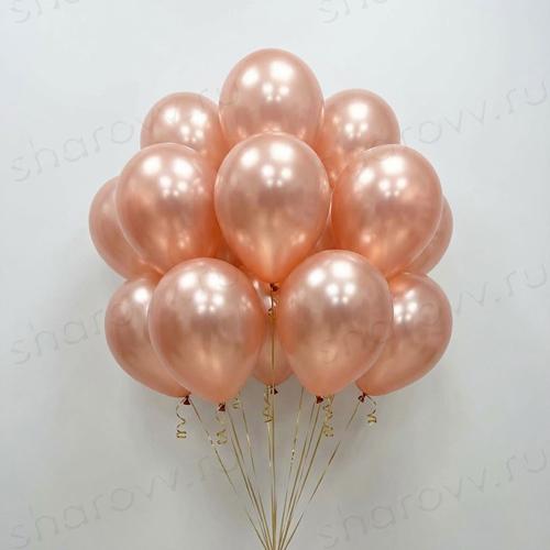 Воздушные шары металлик цвета розовое золото, наполнены гелием. Время полета 12 часов, можно продлить обработав шарики Hi-Float. Гарантированное время полета обработанных шариков 48 часов (как правило летают неделю и дольше).