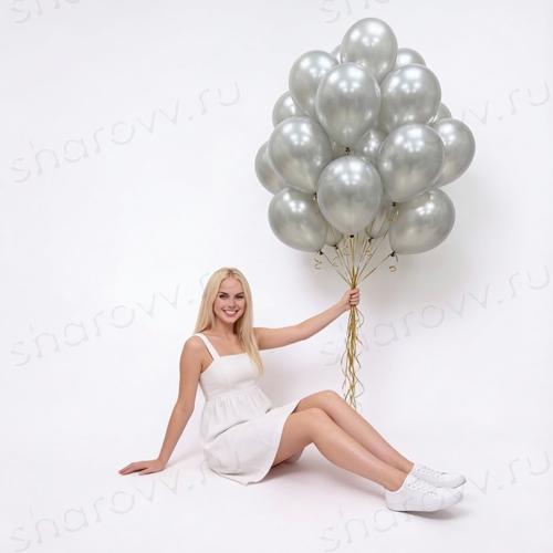 Воздушные шары металлик серебряного цвета, наполнены гелием. Время полета 12 часов, можно продлить обработав шарики Hi-Float. Гарантированное время полета обработанных шариков 48 часов (как правило летают неделю и дольше).