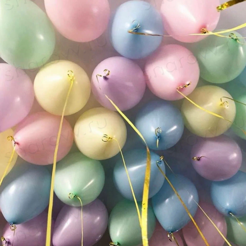 Воздушные шарики "Коктейль макарунс" наполнены гелием. Размер 35-40см. Время полета шариков от 48 часов. Шары доставляются собранными в облако шаров ассорти на усмотрение аэродизайнера, которое можно распустить по потолку. За указанную стоимость на сайте в облако собирают 23 латексных шарика. Цена указана без учета доставки.