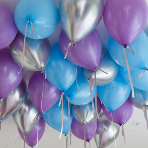 Латексные шары под потолок "Лёгкие переливы" наполненны гелием. Размер 35-40см. Время полета шариков от 48 часов. Шары доставляются собранными в облако из 24 шаров: