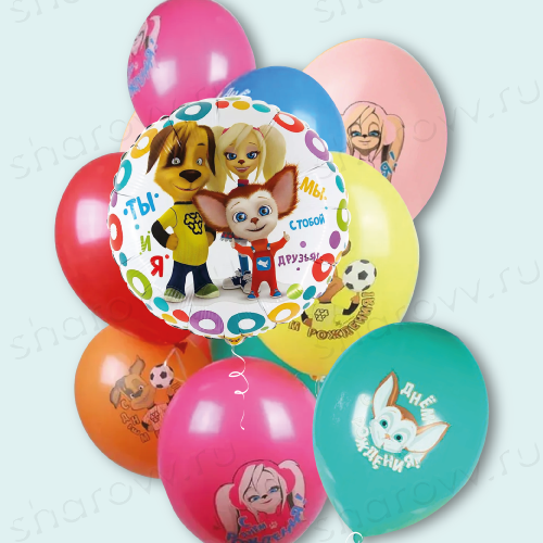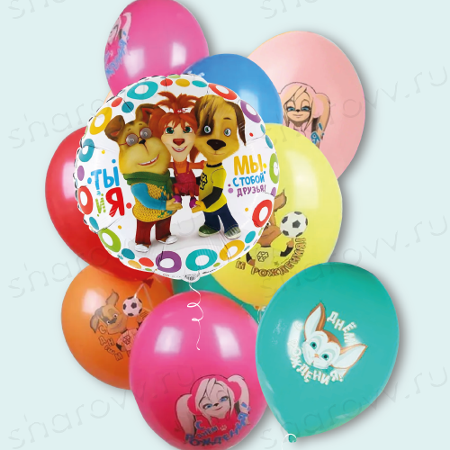 Букет шаров "Барбоскины с тобой друзья" состоит из 9 латексных шаров ассорти с готовым рисунком и фольгированного круглого шара с двусторонним рисунком. Размер латексных шаров 35-40см. Гарантированное время полета шариков 48 часов (как правило летают неделю и дольше). Шарики доставляются собранными на усмотрение аэродизайнера в букет, который можно распустить. Если необходимо собрать шары в фонтан, пожалуйста, укажите информацию об этом в комментарии к заказу или по телефону менеджеру.