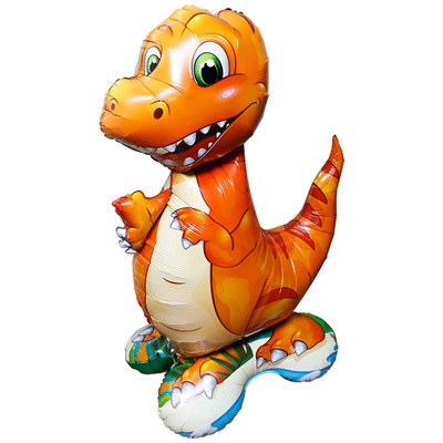 Воздушный шар из фольги на подставке "Динозавр Тираннозавр оранжевый" надут воздухом. Время сохранения формы фольгированного шара от 3-х дней до нескольких недель.