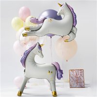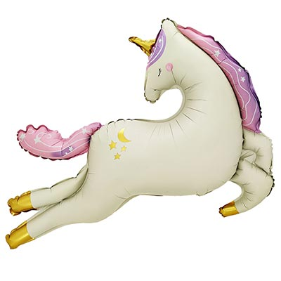 Воздушный шар из фольги "Единорог летящий сатин" надут гелием. Время полета фольгированного шара от 3-х дней до нескольких недель.
