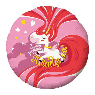 Шар круг фольга "С ДР ПРИНЦЕССА Единорог"