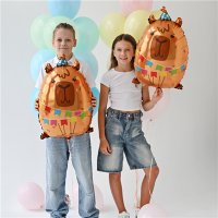 Воздушный шар из фольги "Капибара" надут гелием. Время полета фольгированного шара от 3-х дней до нескольких недель.