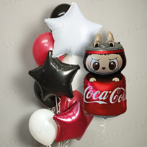 Сет из шаров "Звёздный лимонад с эльфом" состоит из фольгированной фигуры в виде плюшевого эльфа в банке на отдельном грузике и фонтана шаров, в котором: