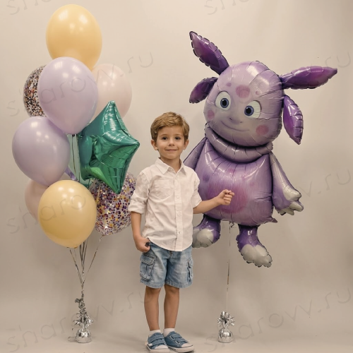 Сет из шаров "Звезда сказки" состоит из фольгированной фигуры любимого героя из мультика и фонтана шаров, в котором: