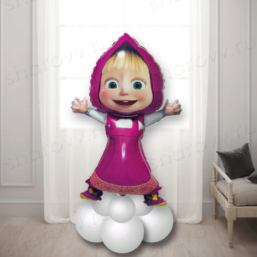 Фольгированный шар на подставке из латексных шаров "Маша обнимаша" будет отличным сюрпризом. Прекрасным дополнением к фигуре станут воздушные шары похожих цветов и тематики.