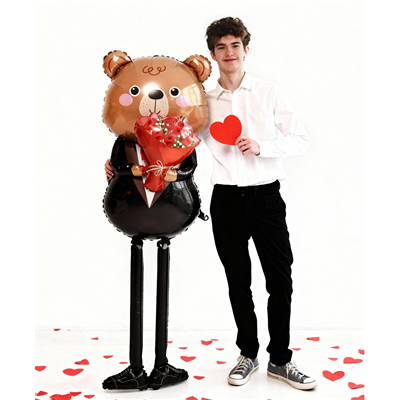 Шар фигура "Медведь с букетом"