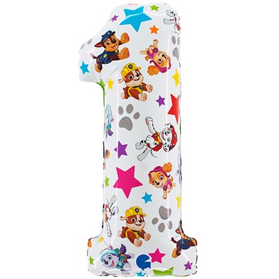 Воздушный шар из фольги цифра "1 Щенячий Патруль" надут гелием. Время полета фольгированного шара от 3-х дней до нескольких недель.