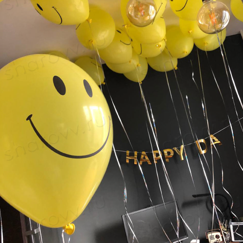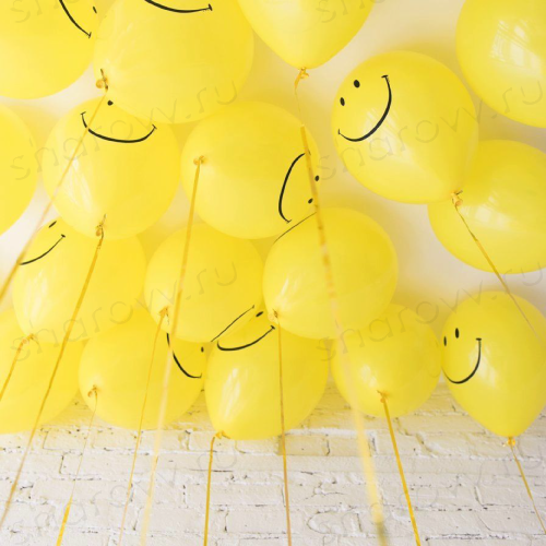 Воздушные шары "Улыбка желтый" надуваются гелием. Время полета 12 часов, можно продлить обработав шарики Hi-Float. Гарантированное время полета обработанных шариков 48 часов (как правило летают неделю и дольше).