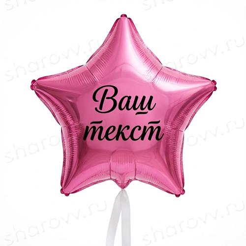 Воздушный шар звезда с надписью "Фуксия" надут гелием. Можно сделать любой текст (оптимально 2-3 слова) и шрифт из представленных. Время полета фольгированного шара от 3-х дней до нескольких недель.