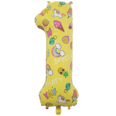 Воздушный шар фольгированная цифра "1" Пати желтая, надут гелием. Время полета фольгированного шара от 3-х дней до нескольких недель.