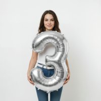Фольгированный шар "Цифра 3" Серебро. Время полета фольгированного шара от 2-х дней до нескольких недель.