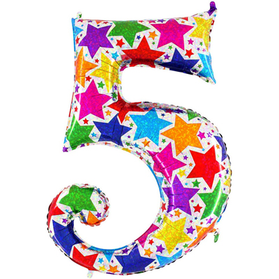 Фольгированный шар "Цифра 5" Звезды голография. Время полета фольгированного шара от 2-х дней до нескольких недель.