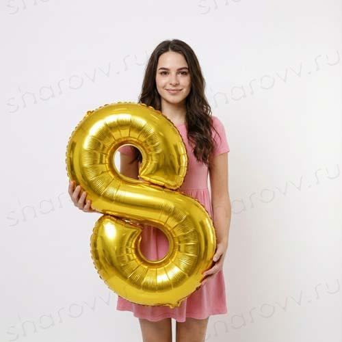 Фольгированный шар "Цифра 8" Золото. Время полета фольгированного шара от 2-х дней до нескольких недель.