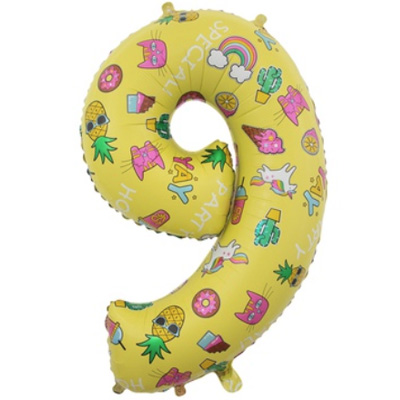 Воздушный шар цифра из фольги "9" Пати надут гелием. Время полета фольгированного шара от 3-х дней до нескольких недель.
