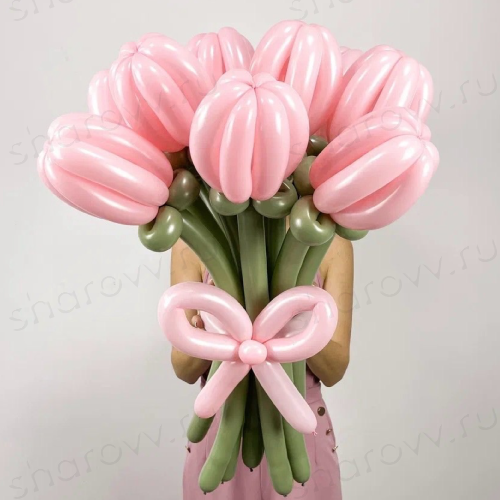 Цветы из шаров "Тюльпаны кашарель" будут отличным сюрпризом. Букет состоит из 9 цветков, аккуратно собранных аэродизайнером. Оттенок зеленых стеблей может отличаться. Прекрасным дополнением к букету станут воздушные шары похожих цветов.