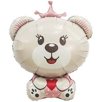 Воздушный шар из фольги "Медведица принцесса с сердечком" надут гелием. Время полета фольгированного шара от 3-х дней до нескольких недель.