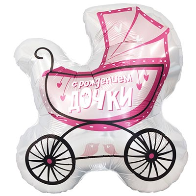 Шар фигура "С РОЖДЕНИЕМ ДОЧКИ Коляска"