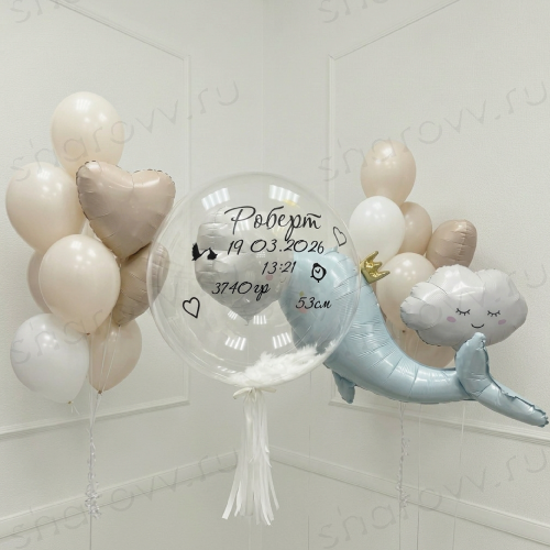 - шар баблс "Метрика с надписью и мини картинками";
