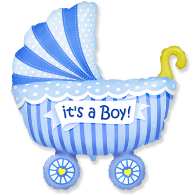 Фольгированный воздушный шар в форме коляски с надписью "Its a Boy", для мальчика. Время полета фольгированного шара от 2-х дней до нескольких недель.