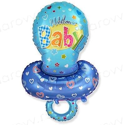 Фольгированный воздушный шар в форме соски с надписью "Baby", для мальчика. Время полета фольгированного шара от 2-х дней до нескольких недель.